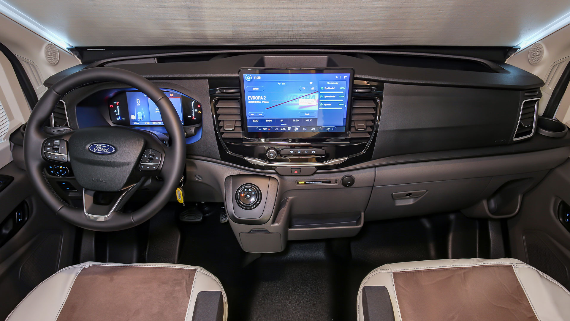- Paket Horon polointegra Ford (Ford Transit 2.0l 121kW/165k, Heavy duty, Světlomety: Výkonné hlavní světlomety se statickými přisvěcovacími světly do zatáčky (mlhová světla), Uzamykatelná přihrádka spolujezdce, Palubní deska a provedení „Trend“, Nárazníky a boční lišty lakované v barvě karoserie, Nástavbové dveře se 2 uzamykacími body, s oknem, košem a centrálním zamykáním, Ovládací panel Truma CP-Plus, Kryt dřezu, Solární panel 200 W s MPPT regulátorem, Střešní okno Skyroof, Plisované zatemnění kabiny, Potahy sedadel kabiny)